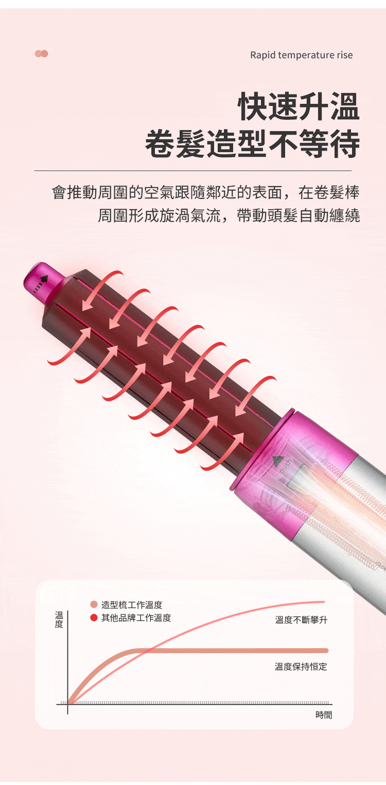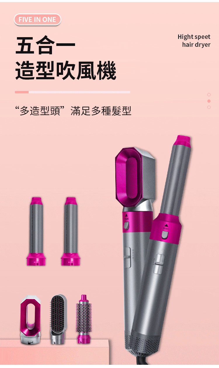 2分鐘前五合一熱風梳 - 【新款五合一熱風梳自動捲髮棒】1入組-NT$1188
