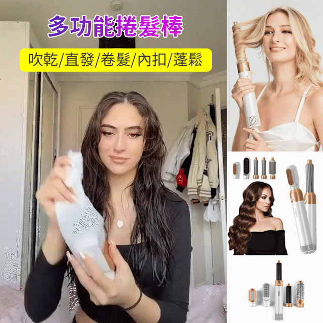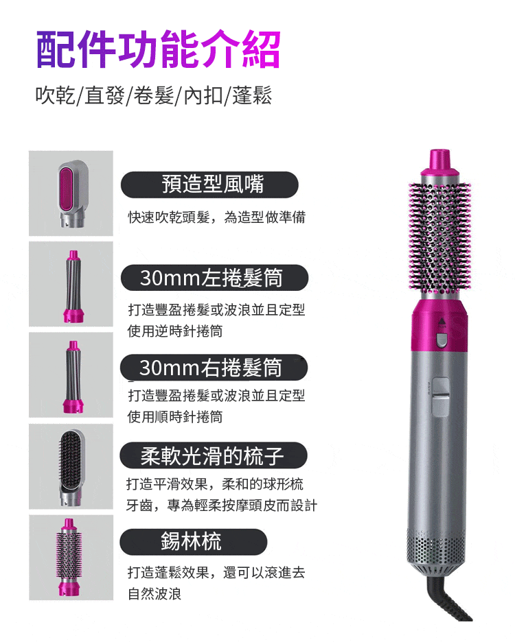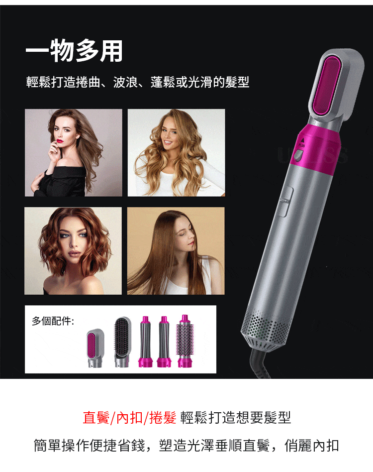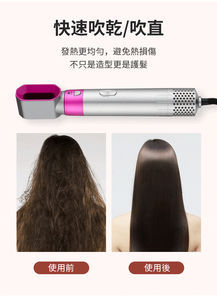 新款五合一熱風梳自動捲髮棒~不傷髮的 輕鬆搞定所有髮型 能直發 /能捲髮/能吹乾頭髮/能內扣頭髮/能蓬鬆頭髮 去除毛躁 不傷發 不燙手~ 快速冷卻!自動恆溫!減少頭皮傷害 可自由切換/一機搞定/小巧便攜