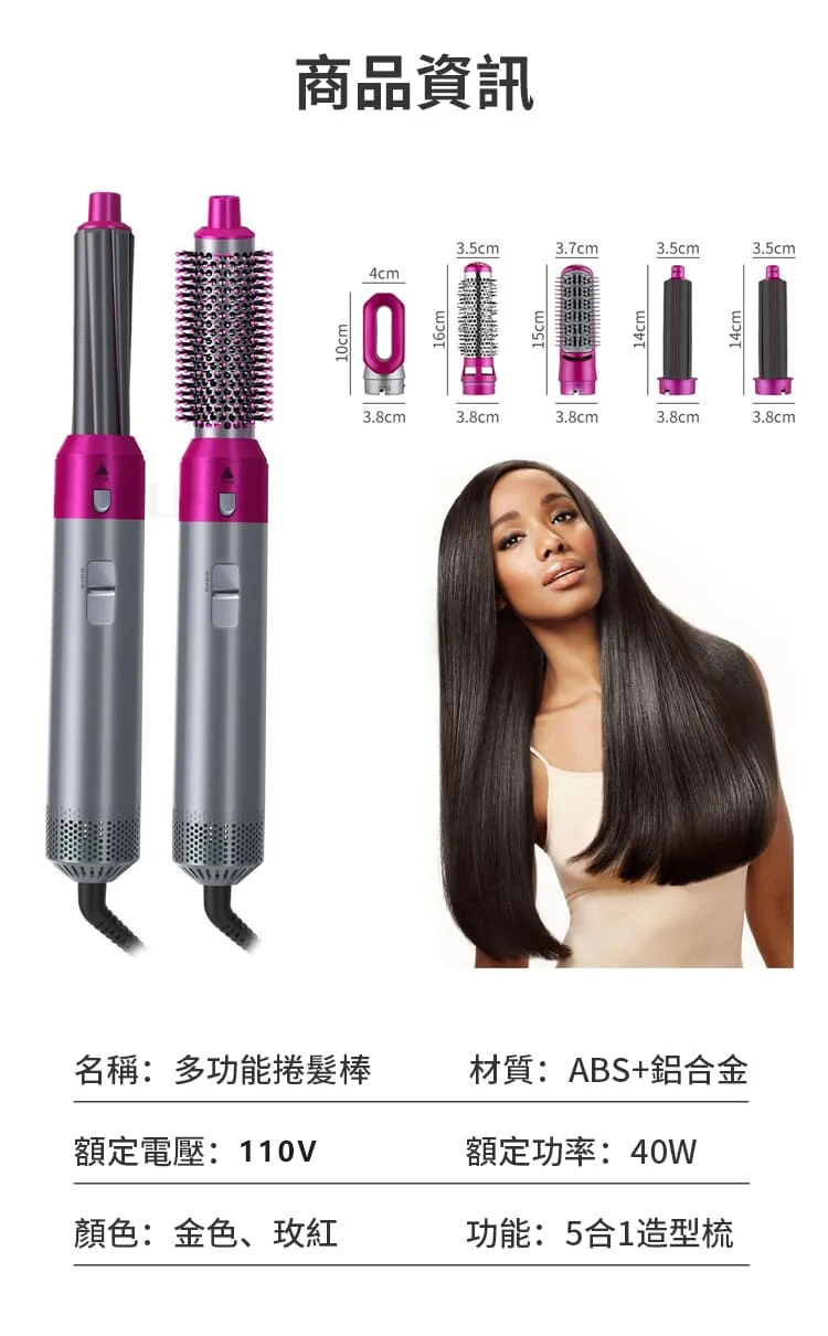 半小時前五合一熱風梳 - 【新款五合一熱風梳自動捲髮棒】1入組-NT$1188
